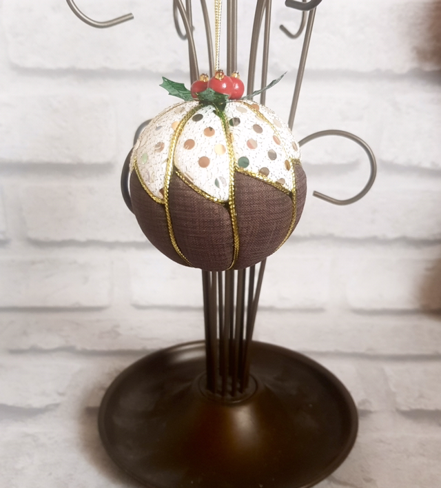 Christmas Pudding ornament in sequin and cotton fabric