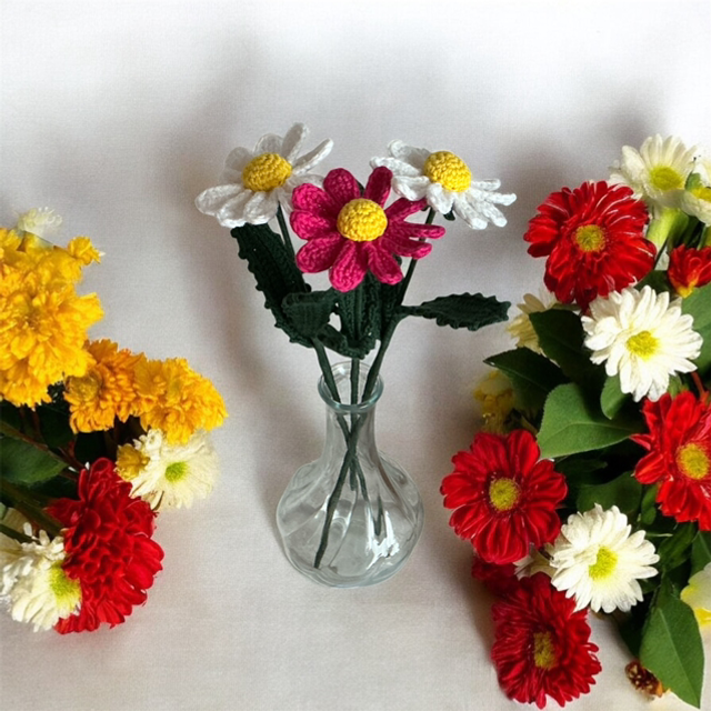These are handmade Crochet Daisies in good quality cotton yarn. If requiring any of the Bouquet's mentioned these will be Made To Order, otherwise they can be sold as a single stem.