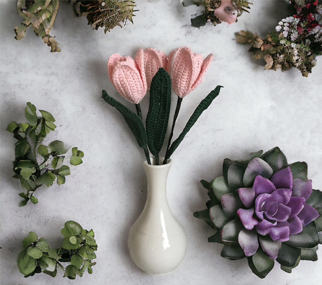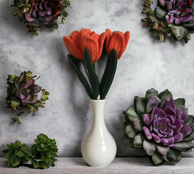 Bring the beauty of springtime indoors with these charming, handcrafted crochet tulips, perfect for Mother's Day, birthdays, or simply brightening your home. Each bloom is meticulously crafted using 100% soft cotton yarn in a variety of vibrant colors, including: There are a few colours out of stock for example: Yellow, Cream, Pink but I able to take orders for these so please allow longer for delivery.
